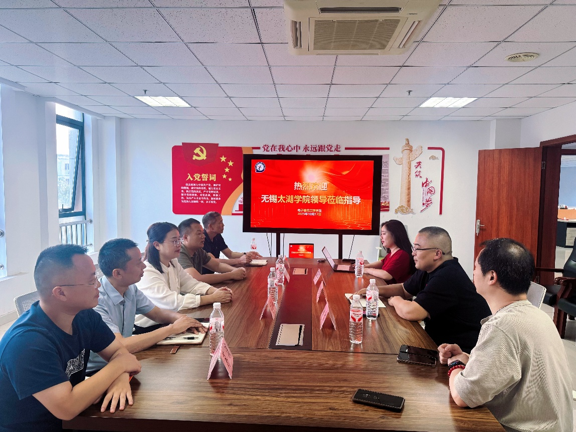 10月17日,无锡太湖学院物联网工程学院副院长王华君、专业负责人姚湘、骨干教师孙钰一行3人莅临我院,围绕双方今年联合立项的江苏省现代职教体系 “3+2”贯通培养项目,结合物联网专业建设、人才培养及教学管理等开展深度交流。校党委委员、宣传部部长、电子信息工程学院院长廖忠智,学院副院长王海峰、总支委员沈志华,专业教师葛滨、班主任喻益军等参加此次活动。